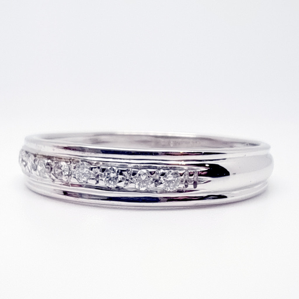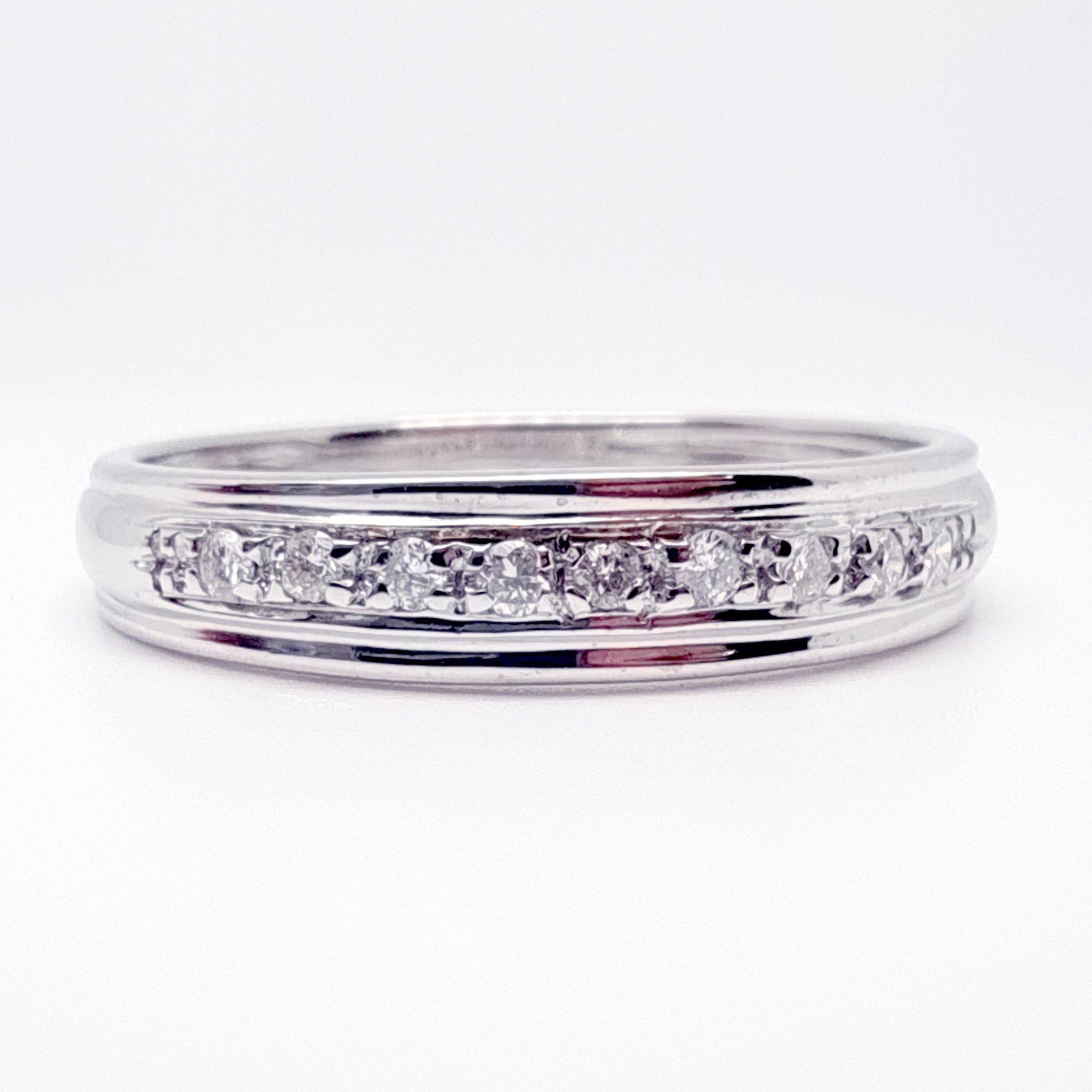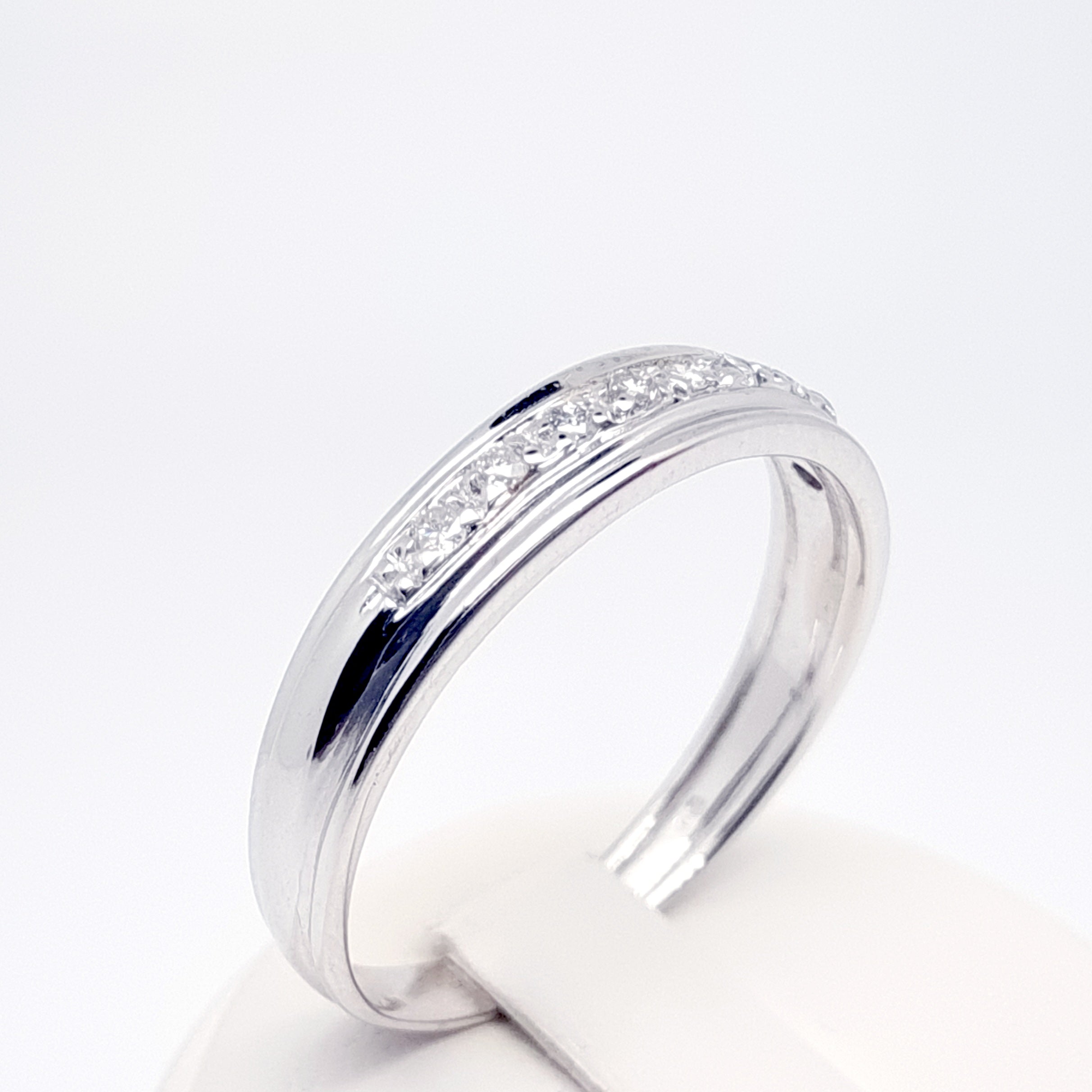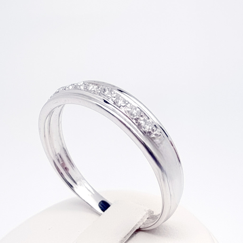 Anello realizzato in oro bianco 18k con 9 diamanti da 0,01 ct ciascuno