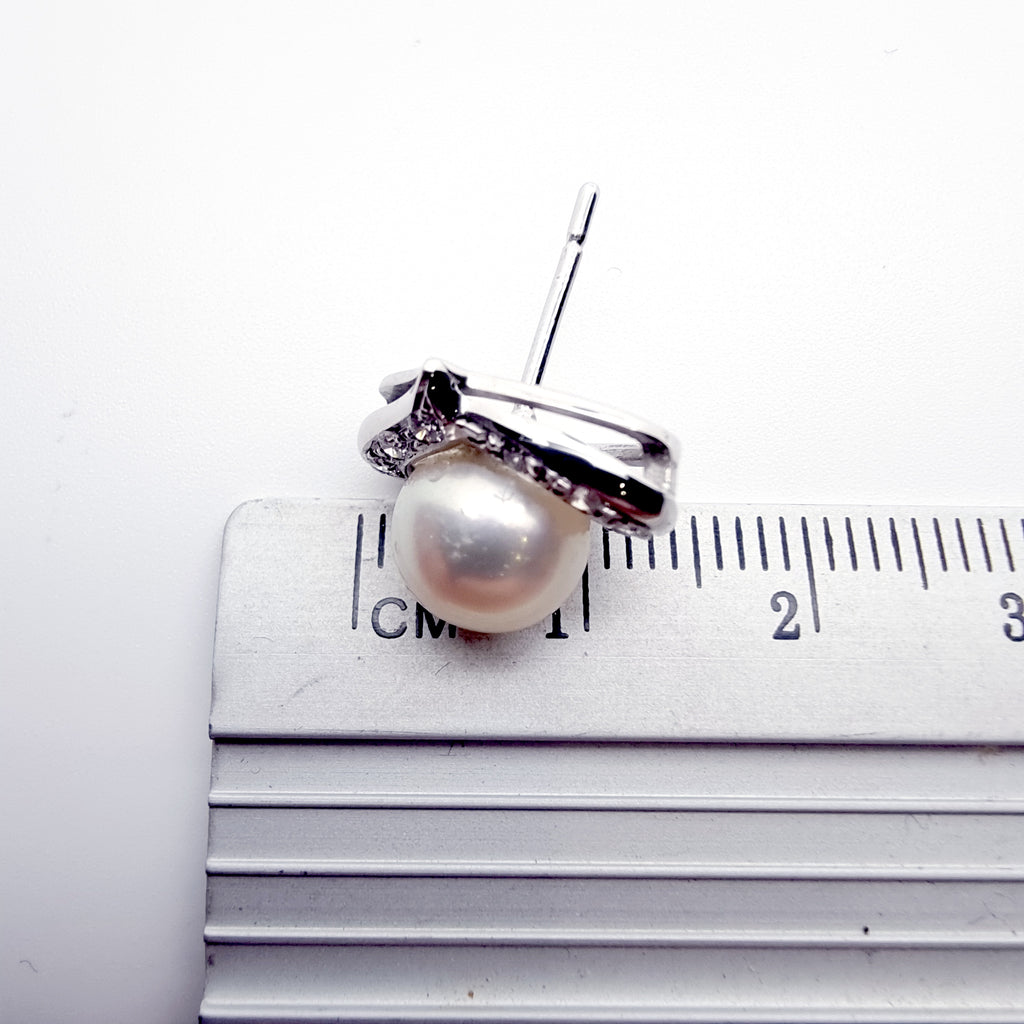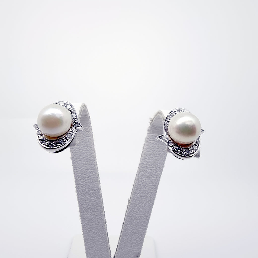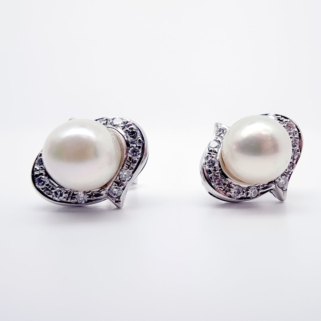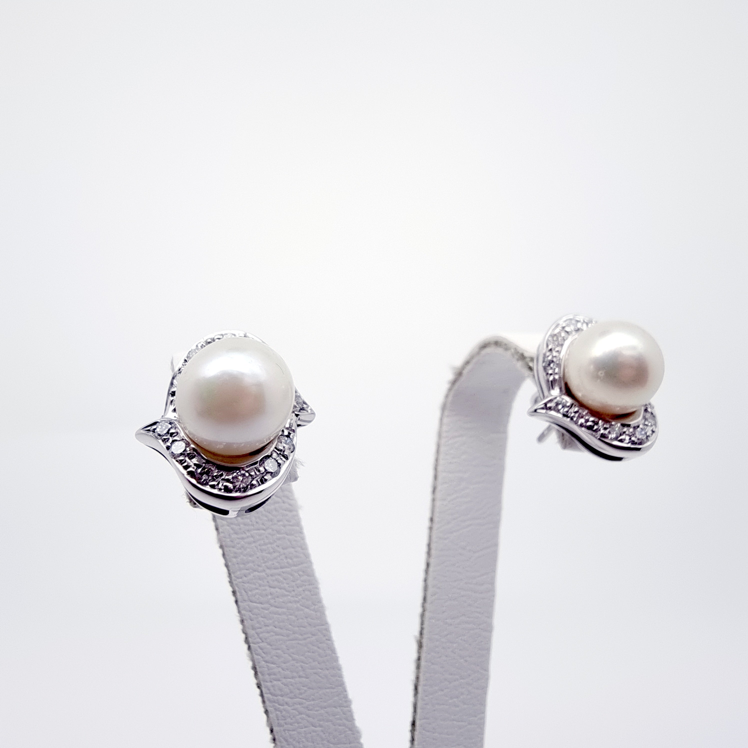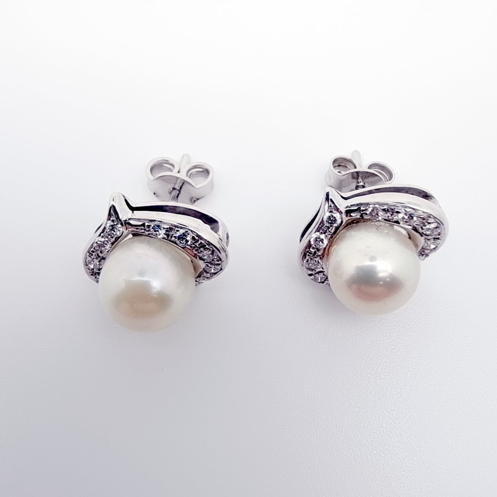 18 Carati Oro Bianco – Orecchini con diamanti e perle