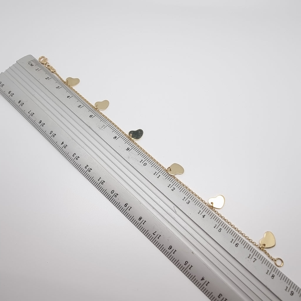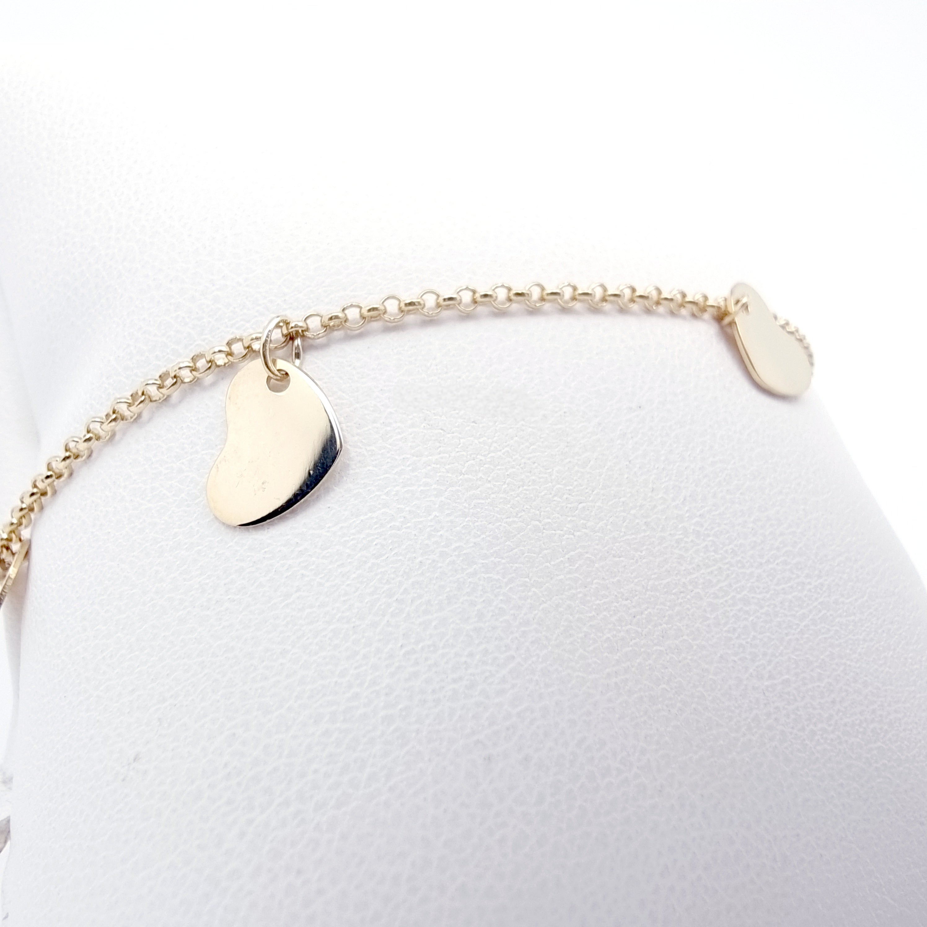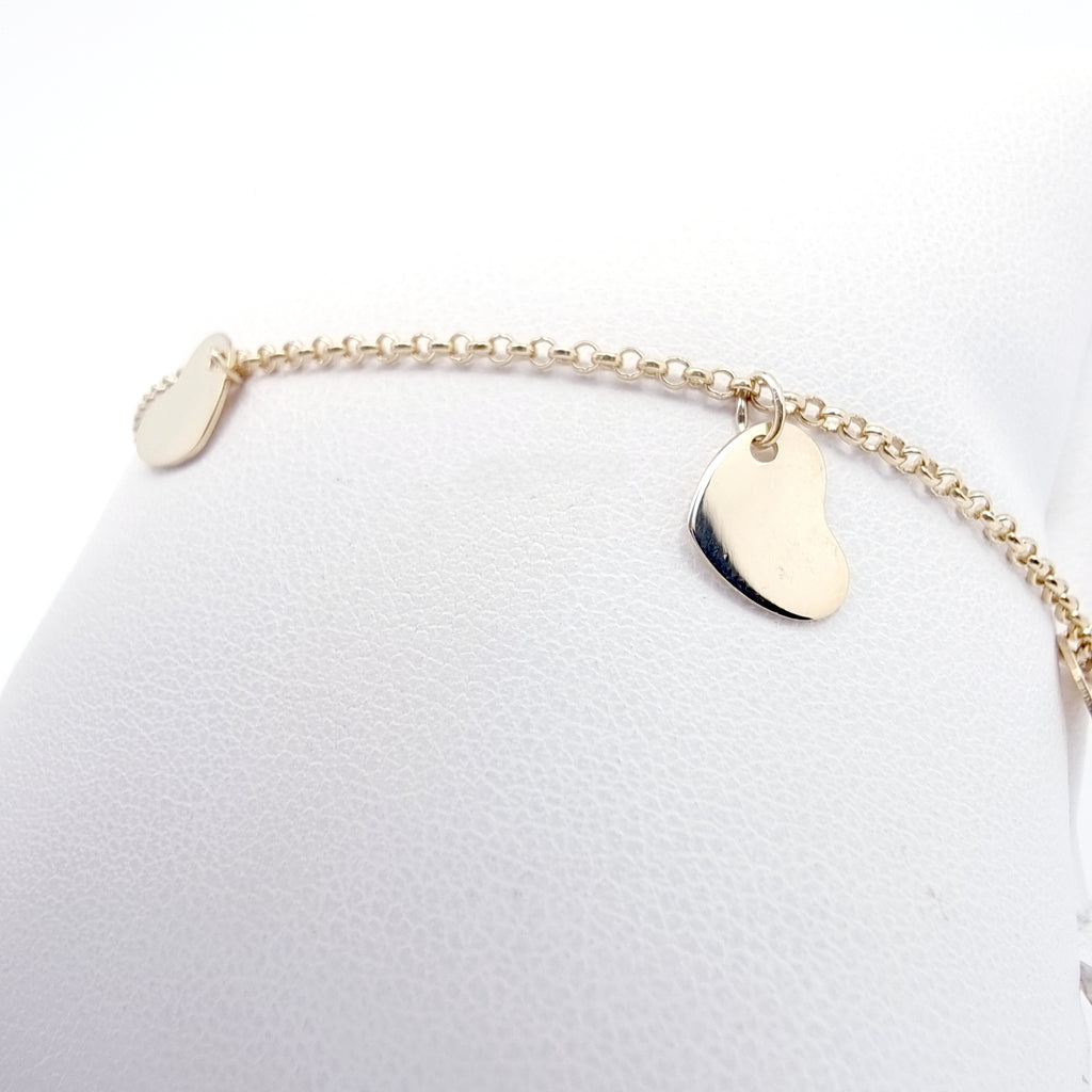 Bracciale realizzato in oro giallo 18k con pendenti a forma di cuore.