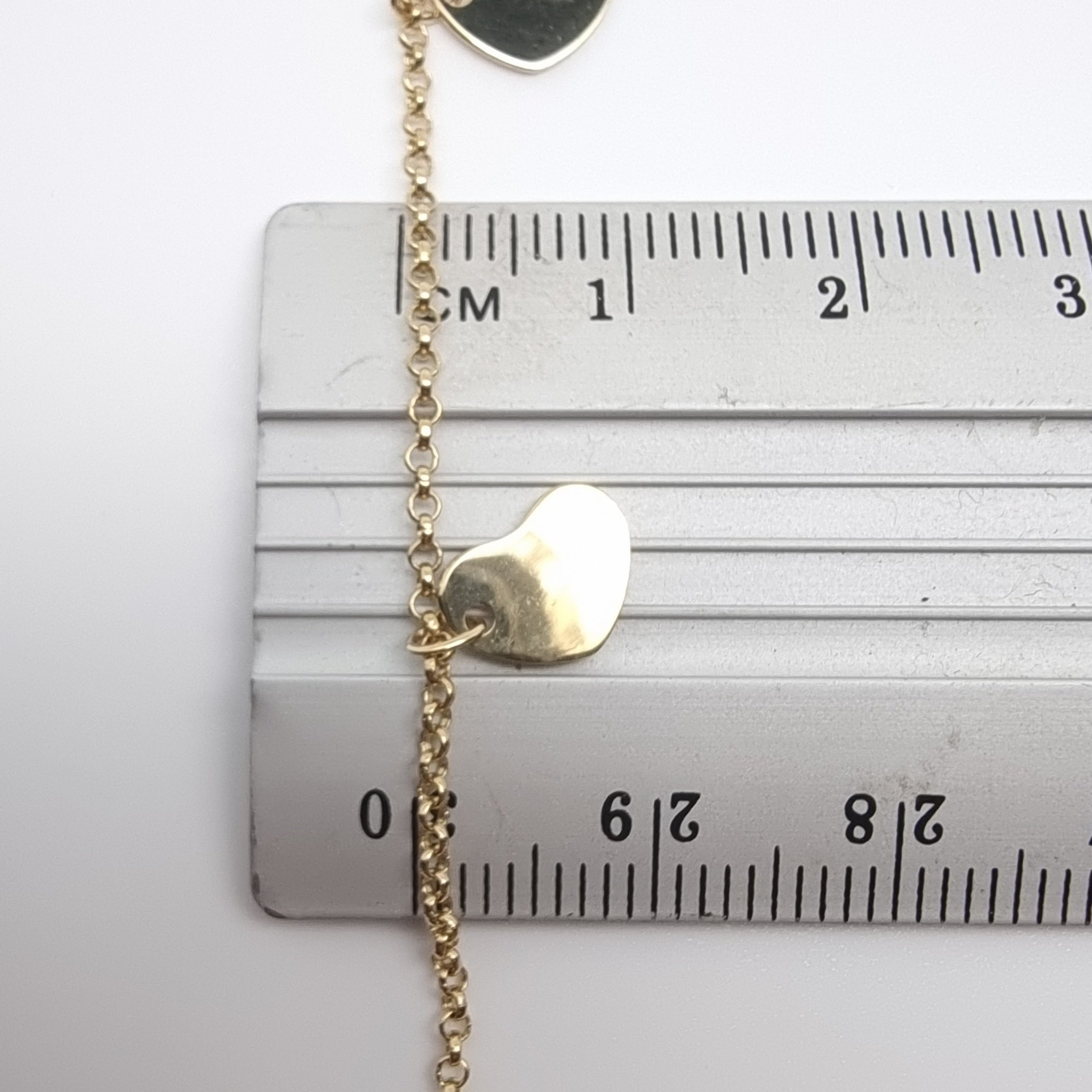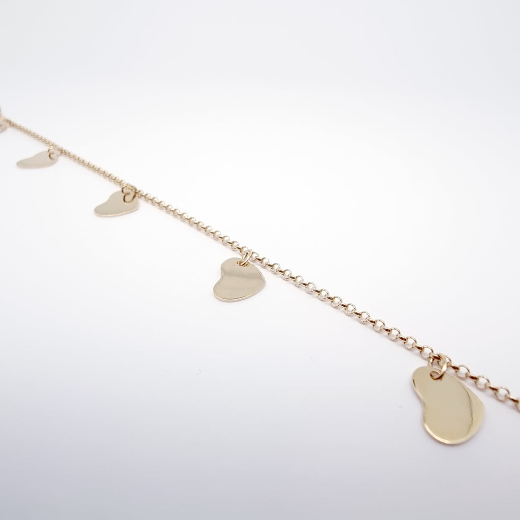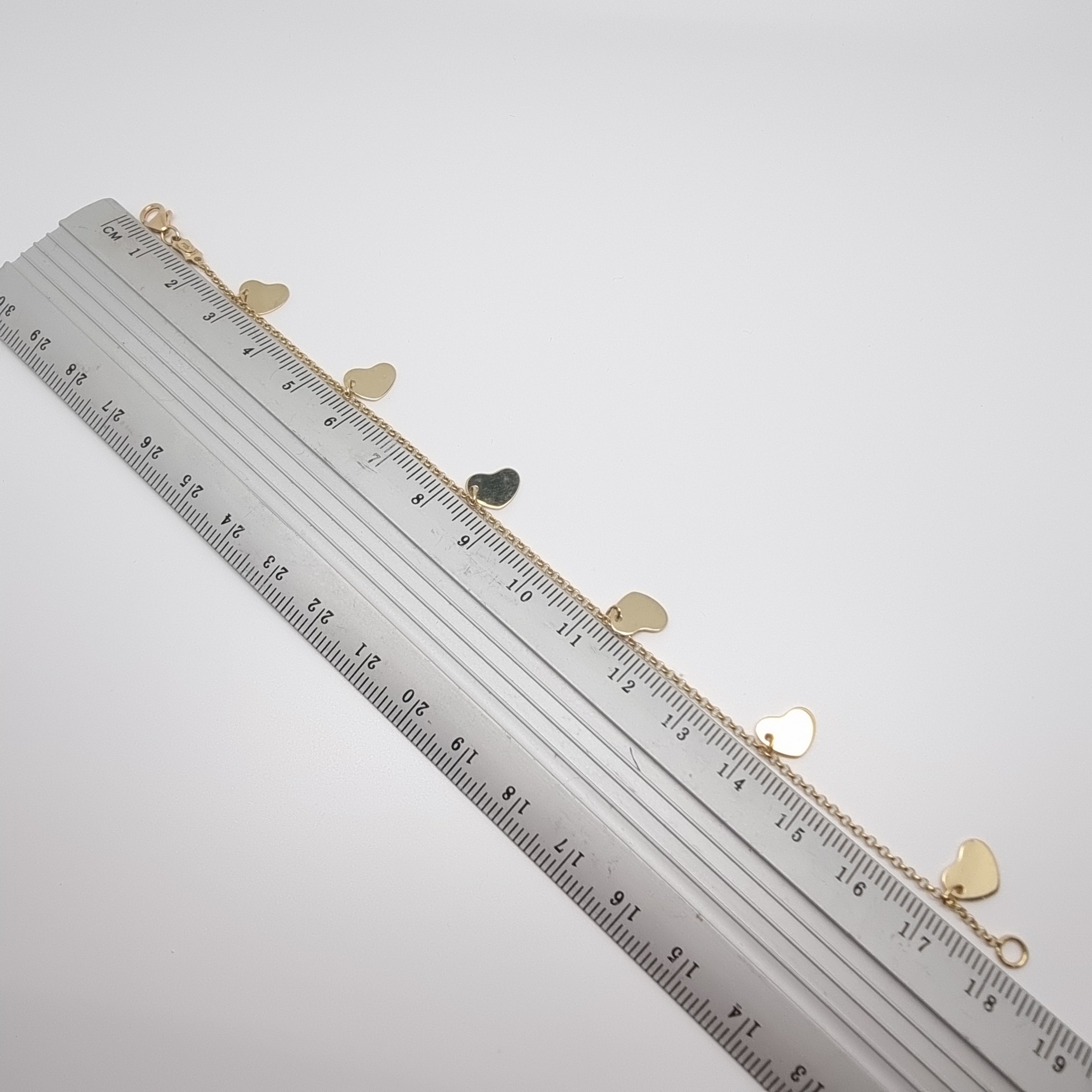 Bracciale realizzato in oro giallo 18k con pendenti a forma di cuore.