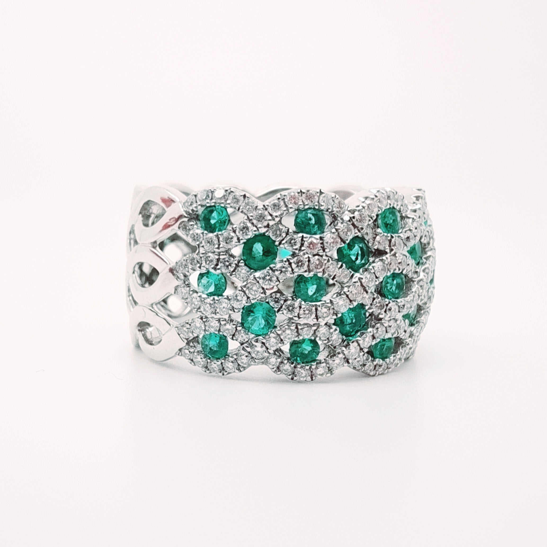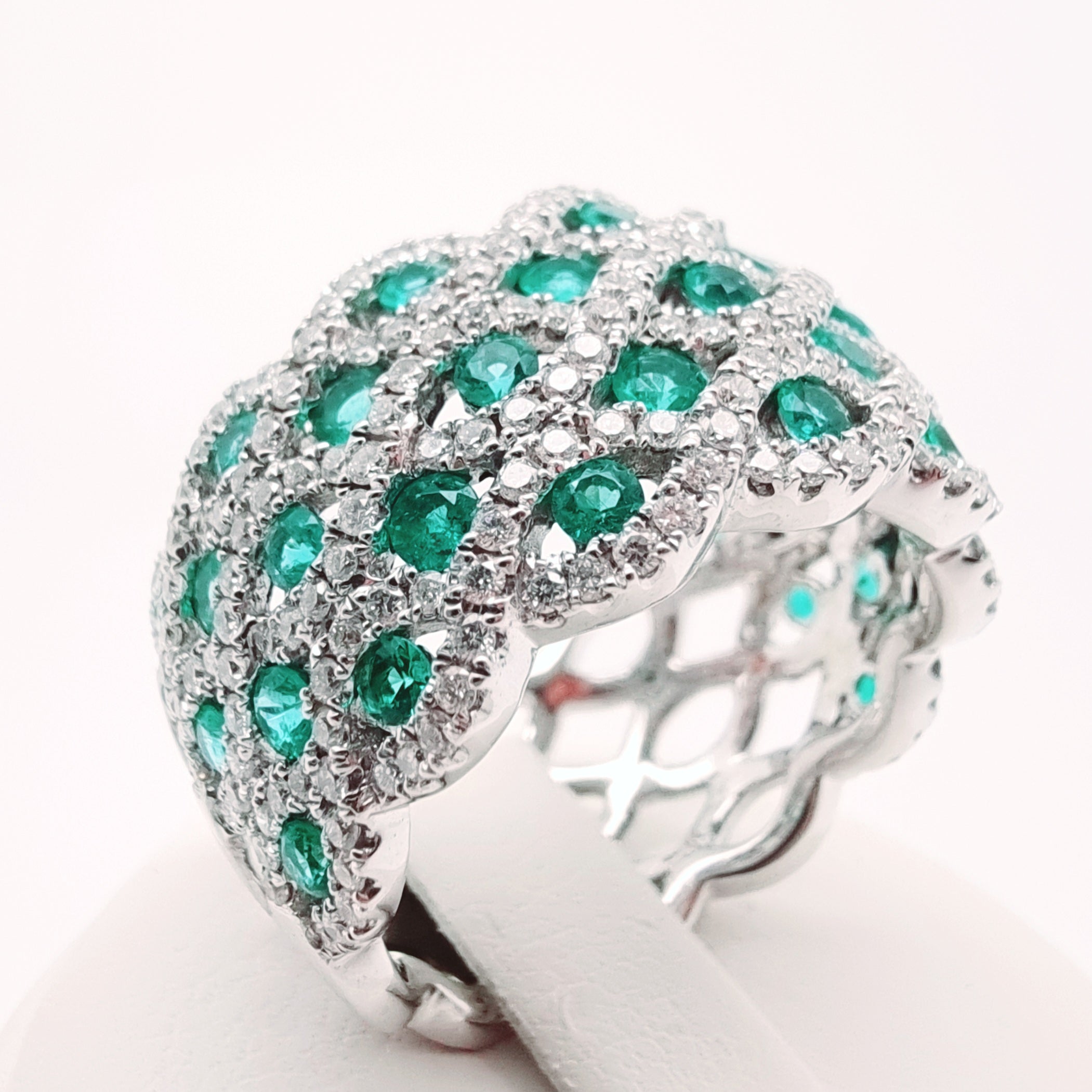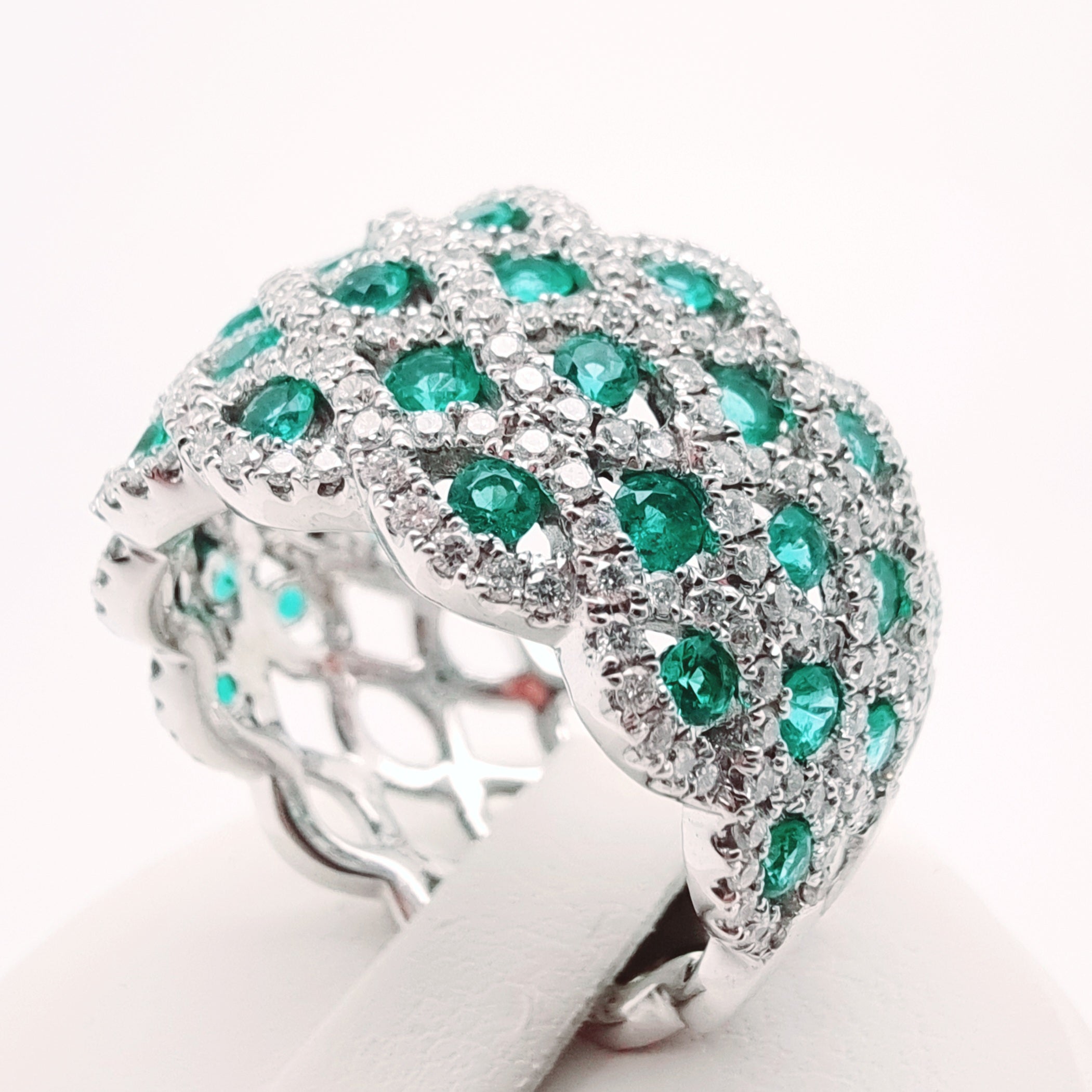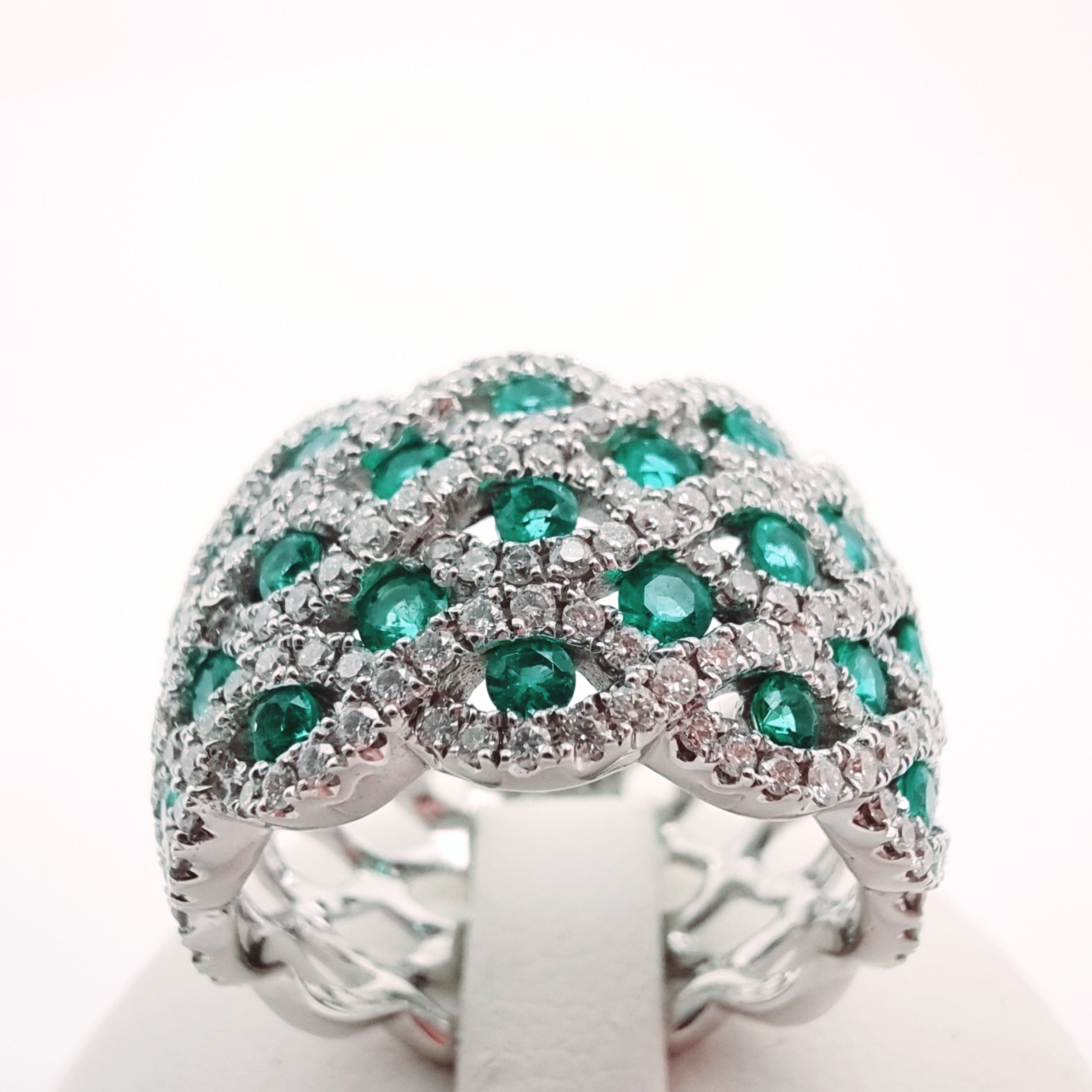 18 Carati Oro Bianco - Anello con diamanti e smeraldi