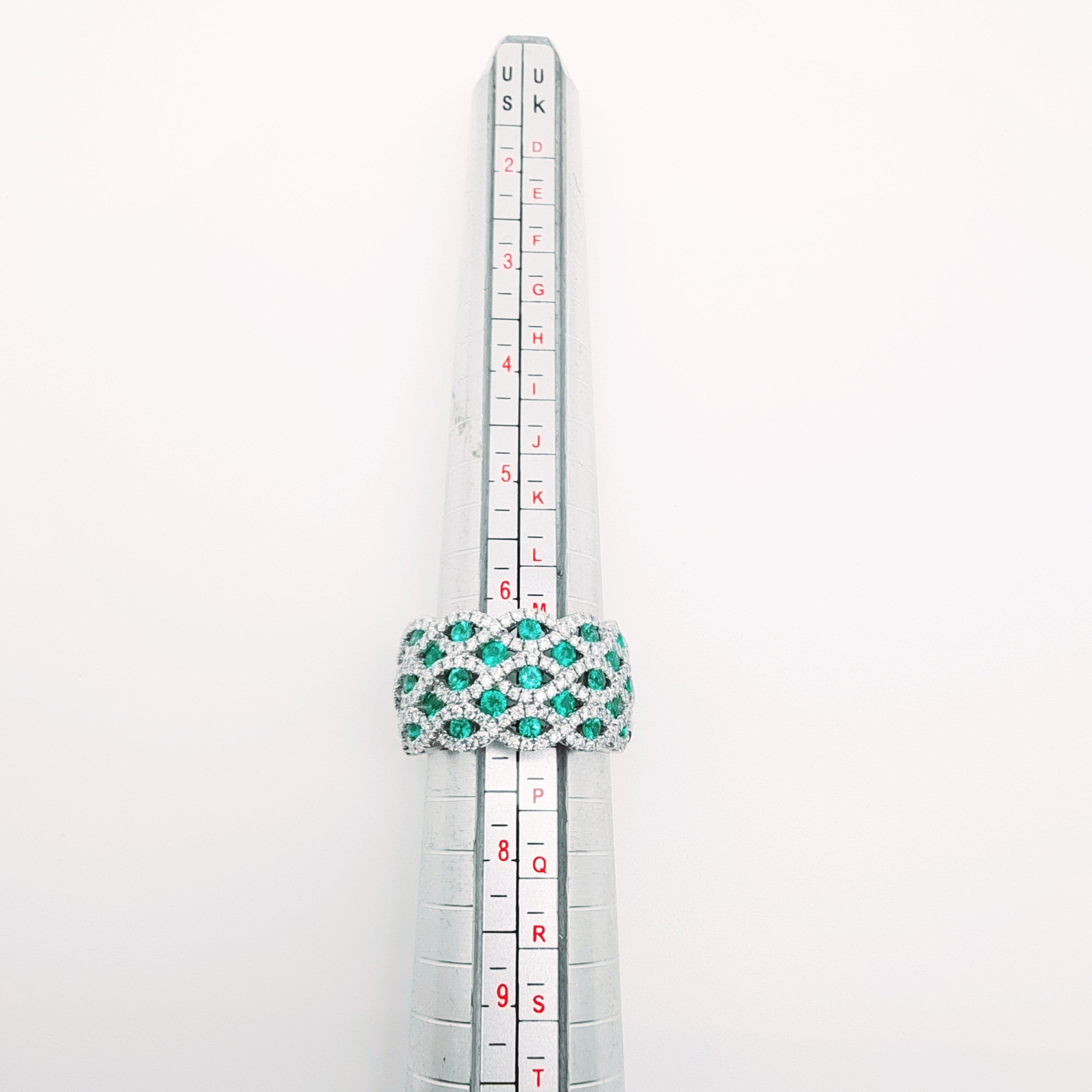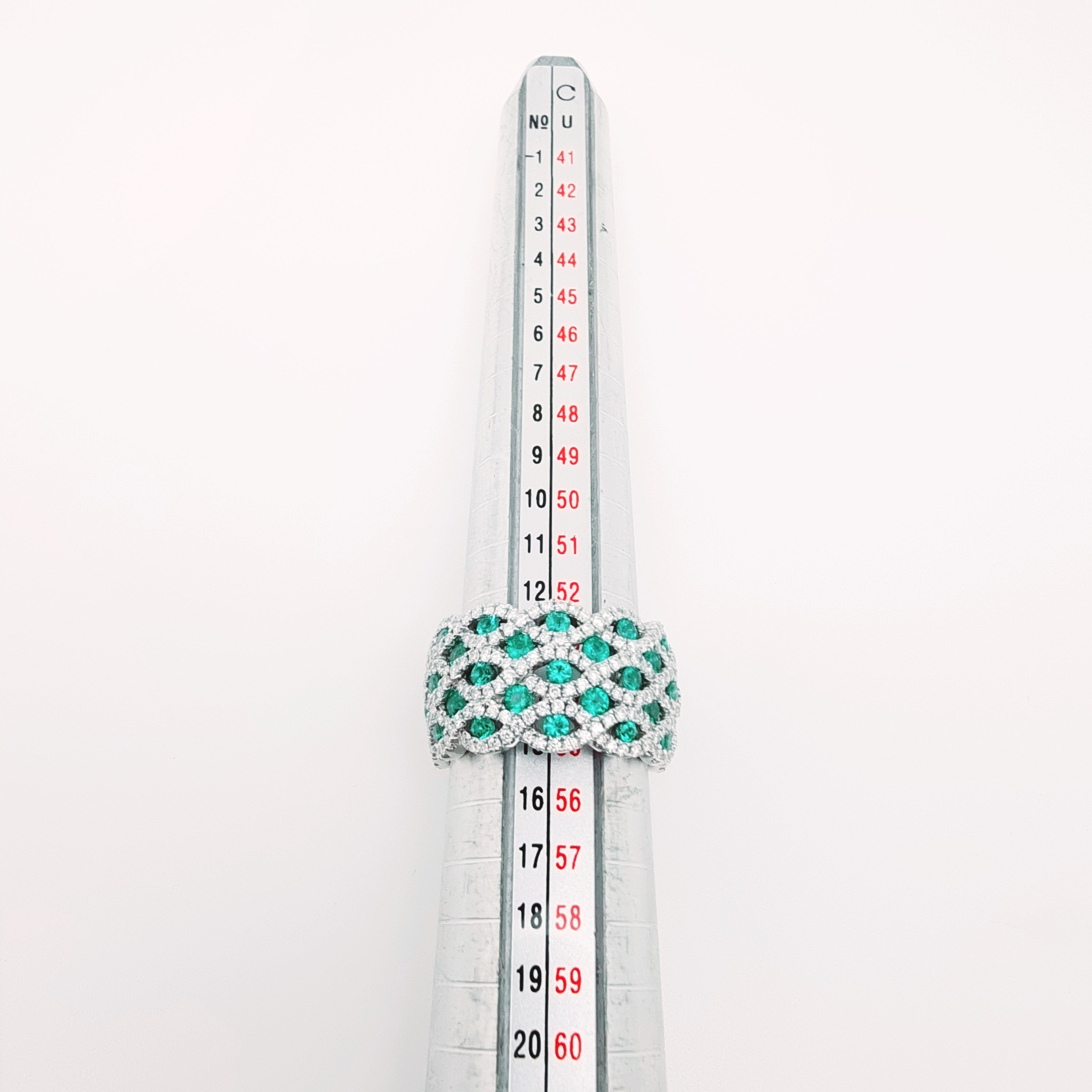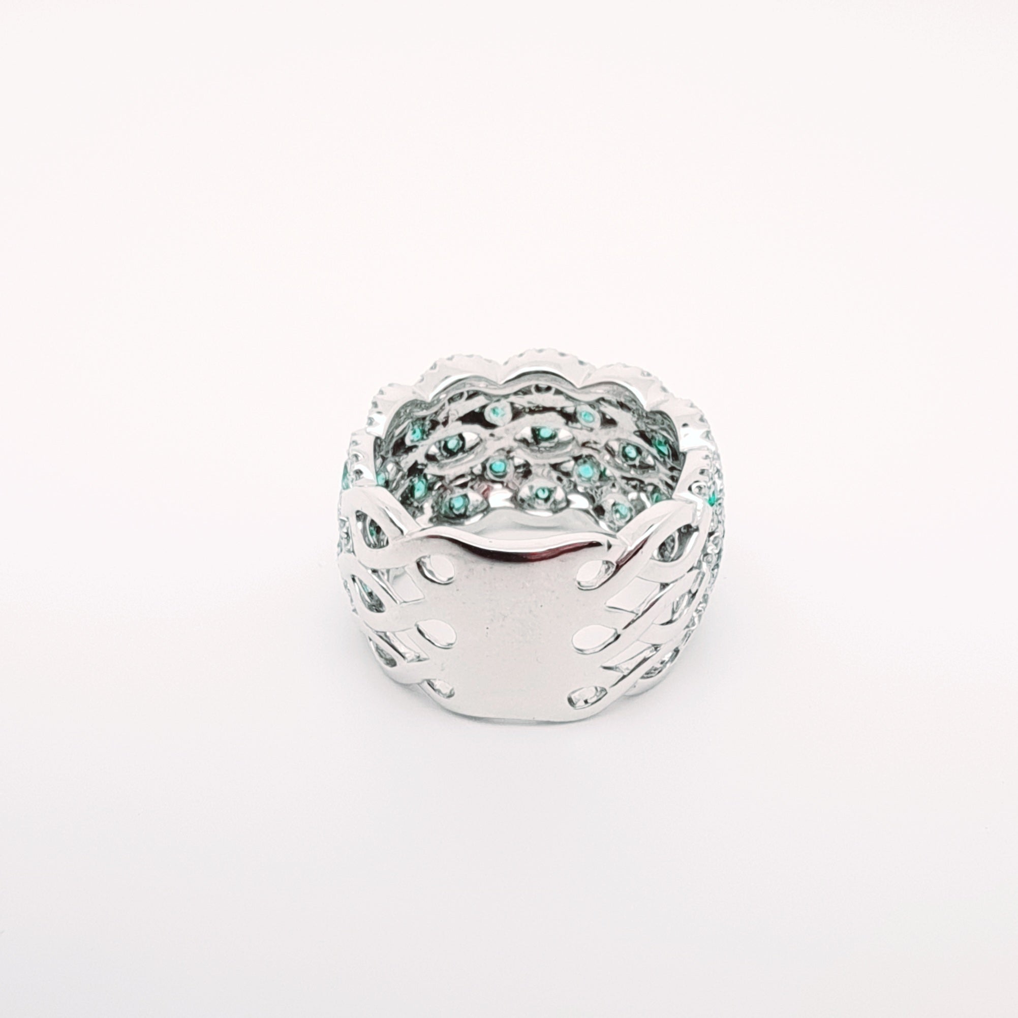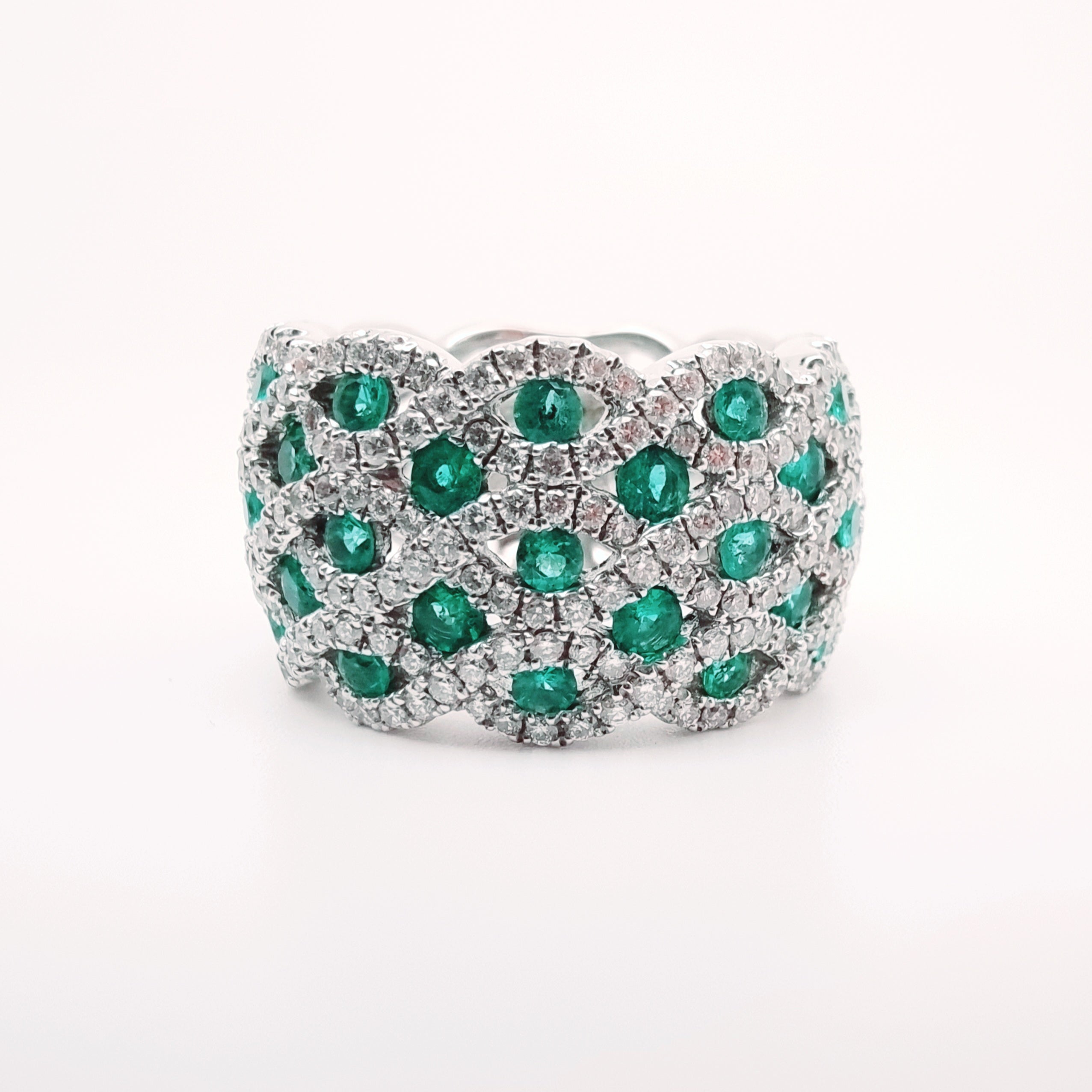 18 Carati Oro Bianco - Anello con diamanti e smeraldi